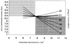Все линии номограммы пересекаются в одной точке перегиба, через которую проходит вторая граница «сахарокислотного» интервала. При кислотности, соответствующей этой точке, изменение сахаристости не ведет к изменению дегустационной оценки.