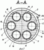 На фиг.3 – сечение А-А на фиг.1, горизонтальное сечение емкости фильтра в узле сопряжения сопла для подачи воды.