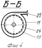 На фиг.4 – сечение Б-Б на фиг.1, горизонтальное сечение фильтра тонкой очистки в виде гидроцилиндра с фильтрационным материалом на поверхности сетчатого цилиндрического экрана.