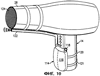 фиг.9 – иллюстрация, показывающая регулировочное устройство такого типа, который представлен на фиг.6, 7 и 8, но который может устанавливаться в порядке модернизации на расположенное спереди сопло уже существующего вентилятора для сушки волос;