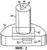 На фиг.2 изображен узел подставки 16 с источником питания, который включает в свой состав аккумуляторную батарею 42 и стержень 44, который может вставляться в ручку 14 вентилятора 10 для сушки волос, показанного на фиг.1, а также электрические клеммы 46, которые входят в соответствующие им клеммы /не показаны/, предусмотренные в ручке 14 вентилятора 10 для сушки волос, изображенного на фиг.1. Подставка 16 с аккумуляторной батареей может иметь такую конструкцию, при которой введение стержня 44 в ручку 14 возможно только лишь в одном единственном направлении. Такая конструкция может быть воплощена во множестве различных форм, к примеру это может быть прорезь 48, выполненная с одной стороны относительно соединителей 46. Среди других вариантов исполнения такой конструкции можно указать на возможность выполнения стержня 44 таким образом, чтобы поперечное его сечение имело соответствующую форму, обеспечивающую возможность вставить стержень в предназначенное под него гнездо в ручке 14 только в одном определенном положении, как показано на фиг.1. Возможен также вариант, в котором подставка 16 с аккумуляторной батареей включала бы в свой состав соответствующее гнездо электрического соединителя 50, предназначенное под соединитель зарядного устройства, показанного на фиг.3. Как указано было здесь ранее, такой соединитель зарядного устройства может быть рассчитан на передачу через него переменного напряжения от источника переменного тока в том случае, если подставка 16 с аккумуляторной батареей имеет блок выпрямителя 52. Это обеспечило бы возможность осуществлять подзарядку блока в то время, когда он смонтирован на вентиляторе 10 для сушки волос, а также иметь дополнительный отдельный блок, который можно будет заряжать в то же самое время. Вес подставки 16 сбалансирован по отношению к весу части корпуса, имеющей удлиненную форму. Такая балансировка может быть легко обеспечена специалистами в данной области техники.