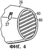 Фиг.4 представляет собой изображенный в увеличенном масштабе вид заднего конца 26 вентилятора 10 для сушки волос, показанного на фиг.1. Следует отметить, что на этом конце имеется множество регулируемых лопаток 60, которые могут сдвигаться ближе друг к другу и раздвигаться дальше друг от друга при перемещении рычажка 27 в ту или иную сторону, благодаря чему обеспечивается регулирование количества воздуха, поступающего в часть 12 полого корпуса, имеющую удлиненную форму. Такое регулируемое отверстие для впуска воздуха снабжается рядом параллельных лопаток 60, положение которых может регулироваться в пределах от такого положения, в котором расстояние между ними будет минимальным, что обеспечит поступление лишь минимального воздушного потока в часть полого корпуса, имеющую удлиненную форму, и вплоть до такого их положения, в котором расстояние между лопатками будет максимальным, что обеспечит тем самым поступление максимального воздушного потока в часть 12 полого корпуса, имеющую удлиненную форму.