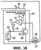 фиг.5F – иллюстрация, показывающая контур, предназначенный для сообщения импульсов транзистору большой мощности с тем, чтобы автоматически поддерживать желаемую температуру нагревательного элемента с использованием принципиально новой цепи регулирования;