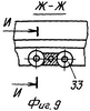 7 – по оси симметрии боковых пластин и одновременно в нижнем указателе выполнено шаровое гнездо таким образом, что линия разъема прямоугольной пластины и указателя проходит по оси шарового гнезда, где свободно установлена шаровая опора, причем такое соединение наиболее технологично;