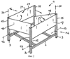 На фиг.2 изображено начало процесса разборки стола 1 по фиг.1. Дно 22 снято со стенок 17, 18 вверх и прилегает (не показано) к базовой раме 2. Вторые стенки 18 отделены от противоположных стоек 15, и их поворачивают по стрелке к внутренней стороне 21 первой стенки 17 боковой рамы 16. Затем каждую боковую раму 16 складывают примерно на 90° вниз на лежащее на базовой раме 2 дно 22 (см. стрелки). Легко представить себе, что сложенный таким образом стол 1 образует плоский пакет.