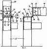 В качестве подробности на фиг.3 изображены ножка 3 и сочлененная с ножкой 3 стойка 15. На ножке 3 видна часть поперечной перекладины 5. Поверхности 9 разреза ножки 3 и стойки 15 прилегают друг к другу. Они лежат, кроме того, в одной общей плоскости 10. В этой плоскости 10 или немного ниже лежит также горизонтально расположенная ось 13 служащего в качестве соединительного средства шарнира 11, чья направленная вверх петля 12 неподвижно закреплена на внутренней стенке 19 стойки 15, а направленная вниз петля 12′ – на внутренней стенке 7 ножки 3. Внутренние стенки 7, 19 соответственно ножек 3 и стоек 15 каждой боковой рамы 16 зеркально-симметрично противоположны друг другу. На чертеже стойка 15 изображена в рабочем положении стола 1.