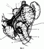 Дистальнее дуоденоеюнального перехода, в месте наибольшей мобильности брыжейки тощей кишки, на уровне 2 мезентериальной артерии, на расстоянии 15 см от связки Трейтца выбрана петля тощей кишки. В брыжейке ободочной кишки в бессосудистой зоне создано “окно”, через которое проведена петля тощей кишки в верхний этаж брюшной полости. Между прямыми сосудами брыжейки этой петли тощей кишки сформировано “окно”, соответствующее диаметру желудочной трубки. В области основания желудочной трубки 1 (фиг.1) накладывают четыре восьмиобразных лавсановых шва 4 (фиг.1), концами нитей прошивают края брыжеечного “окна” петли тощей кишки. Затягивая эти швы, желудочную трубку проводят через брыжеечное “окно”, в результате чего петля кишки оказывается надетой на желудочную трубку проксимальной культи желудка. После этого стенка кишки свободно и равномерно прилегает к стенкам желудочной трубки, охватывая ее своей внутренней стороной на протяжении приблизительно 3,0 см. Далее наложен ряд серозно-серозных швов. Эти швы вовлекают серозу желудочной трубки и серозу надетой на нее петли кишку по периметру, с захватом брыжейки кишки. Стенку кишки и брюшину брыжейки захватывали одним вколом со стороны брыжейки, при этом в шов вовлекается по 0,5 см кишки и брыжейки по границе перехода ее брюшины в брюшину кишки. Несколькими аналогичными швами сшивали между собой оба колена петли кишки. Второй ряд серозно-серозных швов наложен на 1,5 см выше предыдущего. Таким образом, создается мышечная манжетка вокруг желудочной трубки, препятствующая ее расширению и моделирующая функцию преантрального сфинктера. Затем однорядными узловыми серозно-мышечно-подслизистыми швами сформирован корпоро-антральный анастомоз. Под толстокишечной брыжейкой отводящее колено петли тощей кишки уложено параллельно приводящему и фиксировано между собой отдельными швами за брыжеечные края. Сформирован межкишечный анастомоз “бок в бок” однорядными узловыми швами. Дренирование брюшной полости, послойное ушивание раны брюшной стенки. ПГИ удаленного препарата – хроническая рецидивирующая язва желудка.