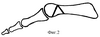 На фиг. 2 представлена схема клиновидной резекции фрагмента плюсневой кости под ее головкой (основание клина обращено к ладонной поверхности). Позиция 1 – плюсневая кость в составе трансплантата пальца стопы. Позиция 2 – фрагмент резекции плюсневой кости.