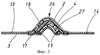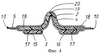 На Фиг.4 показаны ножки 15, 16 первого абсорбирующего слоя 17, которые расположены под вторым абсорбирующим слоем 18, причем каждая ножка образует выступающую часть в направлении непроницаемого для жидкости покровного слоя 3 с относительно плоской поверхностью в поперечном направлении проницаемого для жидкости покровного слоя 2 на этом участке. Это происходит благодаря процессу изготовления, используемого для получения изделия. При другом процессе изготовления может произойти подъем выступающих частей, образованных ножками 15, 16, и второго абсорбирующего слоя 18 по направлению к проницаемому для жидкости покровному слою 2 при относительно плоской боковой поверхности непроницаемого для жидкости покровного слоя 3 в этой области, т.е. противоположной тому, что изображено на Фиг.4, где представлены области, содержащие ножки.