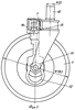 Известны и широко применяются колеса со стояночными тормозами /см., например, проспекты фирм «Майра» и «Bvickle». Германия/, содержащие колеса с поворотными кронштейнами, педаль и сухарь.