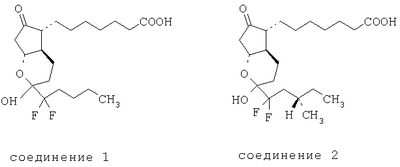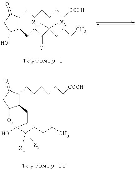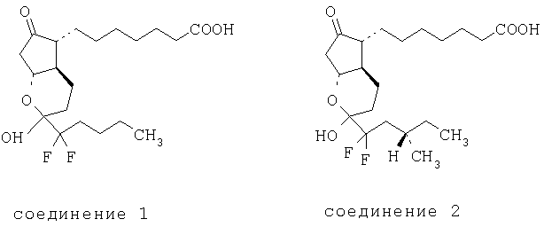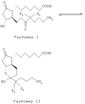 Тем не менее, при оценке физиологической активности аналогов 15-кето-PG авторы настоящего изобретения обнаружили, что соответствующие бициклические соединения, например бициклические таутомеры, замещенные одним или несколькими атомами галогенов, могут применяться в малых дозах для облегчения запора. Если это желательно, можно использовать увеличенные дозировки, для того чтобы вызвать сильное слабительное действие, хотя главной задачей настоящего изобретения является восстановление нормальной функции кишечника (стул от 3 до 7 раз в неделю).