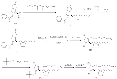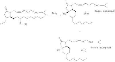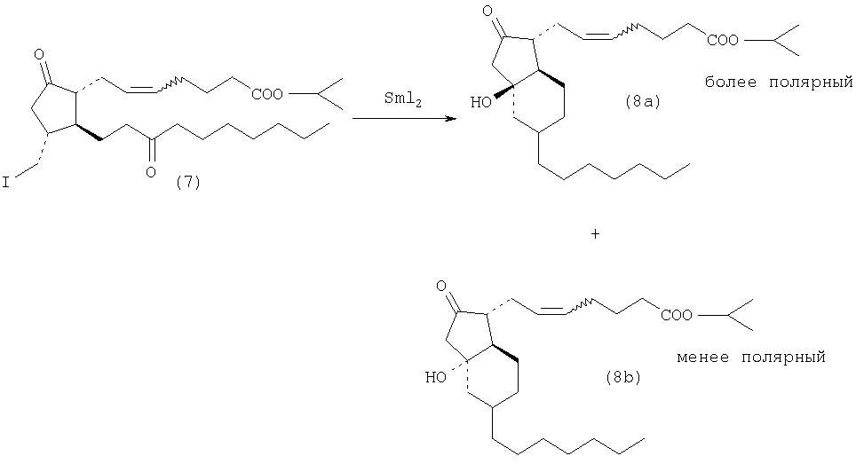 Получение изопропилового эфира 7-[(1S,3S,6S,7R)-3-гептил-3-гидроксибицикло[4,3,0]-нонан-8-он-7-ил]гепт-5-еновой кислоты и изопропилового эфира 7-[(1S,3R,6S,7R)-3-гептил-3-гидроксибицикло[4,3,0]-нонан-8-он-7-ил]гепт-5-еновой кислоты.