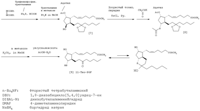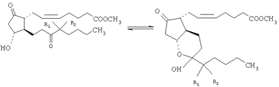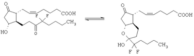 Таутомеризм между атомом кислорода в положении С-11 и кето-группой в положении С-15, показанный выше, является особенно значительным в случае соединений, имеющих 13,14-простую связь и два атома фтора в положении С-16.