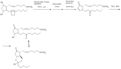 Простагландины (в последующем обозначаются PG) представляют собой группу жирных кислот, которые обладают широким спектром физиологической активности и содержатся в тканях и органах человека и животных. PG содержат каркас простановой кислоты следующей формулы: