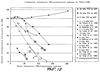 Уриказа из Candida utilis приобреталась либо у компании Sigma-Aldrich (St. Louis, МО; номер по каталогу U1878), либо у компании Worthington Biochemical Corporation (Freehold, NJ; номер по каталогу URYW). Действуя по описаниям Примеров 1 и 2, тетрамерную форму изолировали, и синтезировали PEG-конъюгаты с помощью PEG весом 5 кДа, 10 кДа или 30 кДа (фиг.1А-Б). Фиг.1А показывает сохранение активности PEG-илированной уриказы из Candida utilis в виде функции количества нитей PEG, связанных с каждой подъединицей. Данные, полученные в соответствии с настоящим изобретением ( , , ), сравниваются с данными Nishimura, et al., (1979); Nishimura, et al., (1981); Chen, et al., (1981); Davis, et al., (1981); Tsuji, et al., (1985); Yasuda, et al., (1990), и Fujita, et al., (1991). Точки данных в больших кругах обозначают конъюгаты, которые описываются как неантигенные в Nishimura, et al., (1979 или 1981) или неиммунореактивные в Chen, et al., (1981).