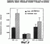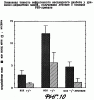 Фиг.10 показывает, что лечение уриказно-дефицитных мышей с помощью PEG-модифицированной СБХ-уриказы снизило тяжесть нефрогенного несахарного диабета, характеризующегося ненормально высоким потреблением воды и ненормально высоким выходом мочи. Генетические основы мышей и протокол лечения были теми же, что и на фиг.9. Среднее и среднеквадратичное отклонение дневного потребления воды (сплошные прямоугольники) и выход мочи (штрихованные прямоугольники) показаны для трех групп по шесть мышей.
