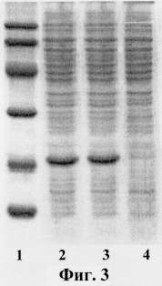 4 – штамм Е.coli BL21(DE3), не несущий плазмиды pBSH-ED15 или pBSH-ED16.