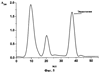 450 нм линейно зависит от концентрации натрия N-лаурилсаркозина. Измерение остаточной концентрации натрия N-лаурилсаркозина показывало, что в конечном продукте его концентрация была менее 0,0035% (0,035 мг/мл), что говорило о почти полном (более 99,7%) удалении детергента. При этом эндостатин человека сохранял растворимость в водных растворах.