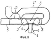 На фиг.5 представлен второй вариант создания обходного пути для химуса. Особенностью этого варианта является то, что с целью шунтирования перекрываемого баллонами участка кишечника дистально расположенную (по отношению к устройству) кишечную петлю 11 путем наложения энтероэнтероанастомоза “бок в бок” 12 соединяют с проксимальным (по отношению к устройству) участком кишечника. В этом случае химус из вышележащих отделов кишечника будет иметь возможность поступать в нижележащие его отделы, проходя через анастомоз 12.