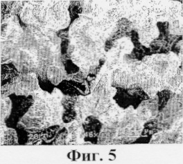 Аналогичным образом можно видеть, что для неорганически связанных инструментов в соответствии с настоящим изобретением пористость в абразивном композиционном материале представляет собой взаимосвязанную пористость. Абразивные шлифовальные зерна кругов в соответствии с настоящим изобретением объединены в неравномерно распределенные кластеры. В отличие от этого имеется правильное и однородное распределение зерна в обычных кругах сравнения, которые изготовлены с использованием такого же типа неорганического связующего материала и материалов зерна. Все компоненты обычных кругов размещены однородным и гомогенным образом по поверхности круга, в то время как все компоненты круга в соответствии с настоящим изобретением расположены нерегулярно и структура не является гомогенной. Как этого и следовало ожидать от инструмента с использованием неорганического связующего материала (например, застеклованного связующего материала) и относительно мелкого абразивного зерна, что является обычным для такого инструмента, при сравнении с органическим связующим материалом и более крупным абразивным зерном, показанным на фиг.5, каналы пористости и сетка абразивного шлифовального зерна и связующего материала видны не так четко в инструментах с неорганическим связующим материалом, как в инструментах с органическим связующим материалом.