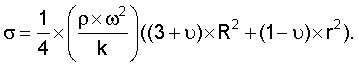 Если разрывная скорость будет в 2 раза выше (8,000 линейных футов в минуту (40.64 м/с) или 88.8 радиан/с), то тогда растягивающее напряжение =1153 фунт на квадратный дюйм, в точке, где композиционный материал испытывает механическое разрушение.