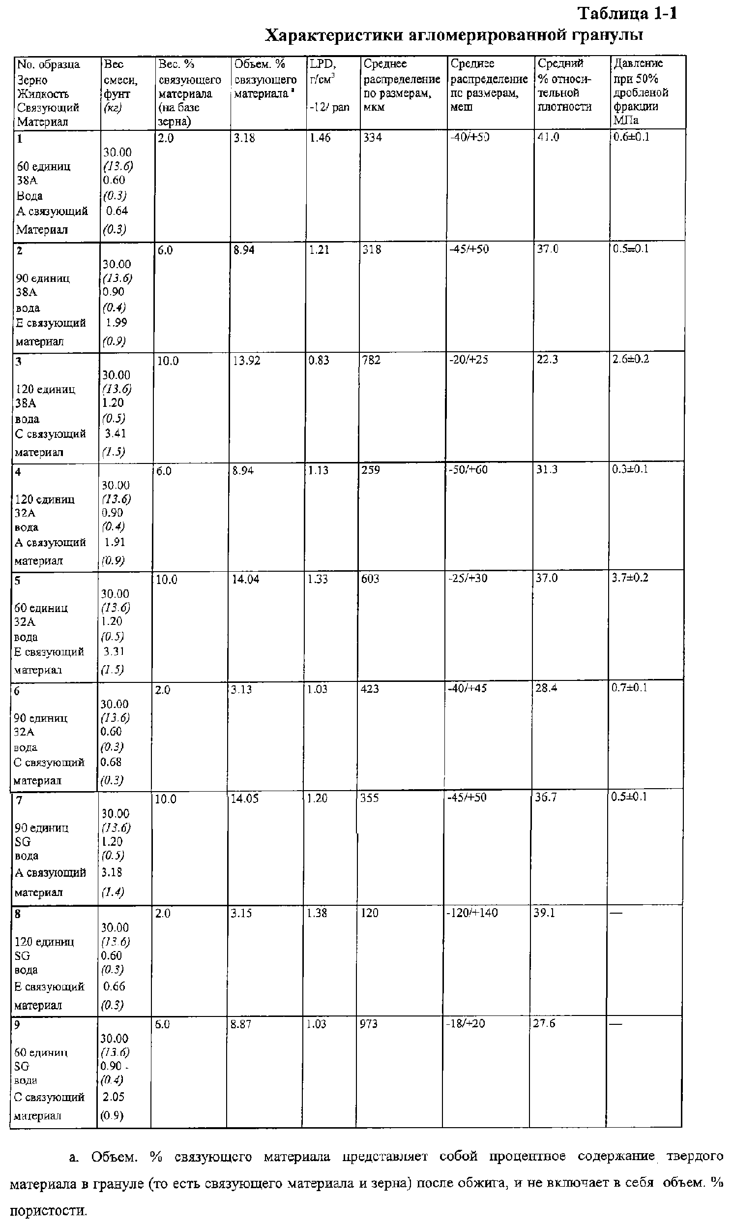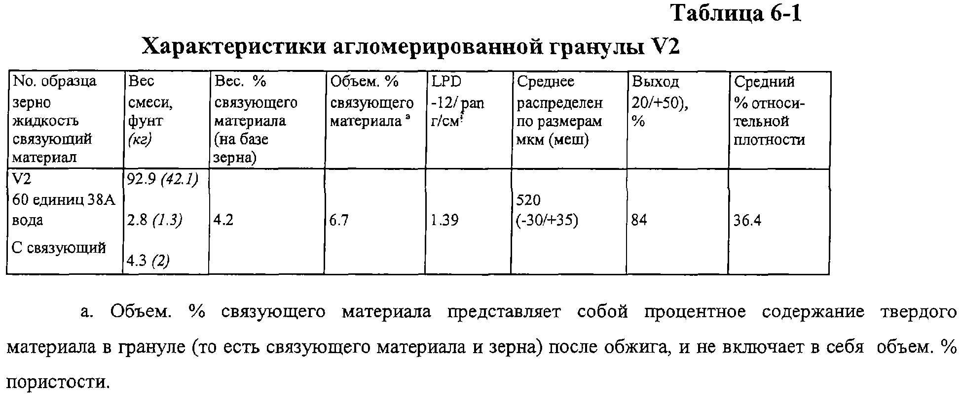 В патенте США No.-A-4,541,842 раскрыты покрытые абразивы и абразивные круги, сделанные с использованием агрегатов абразивного шлифовального зерна и вспененной смеси застеклованных связующих материалов с другими исходными материалами, такими как углеродная сажа или карбонаты, пригодные для вспенивания в ходе обжига агрегатов. «Гранулы» агрегатов содержат больший процент связующего материала, чем зерна, в объемных процентах. Гранулы, которые используют для изготовления абразивных кругов, спекают при 900°С (до плотности 70 фунт/куб. фут; 1,134 г./куб. см), причем для изготовления круга используют застеклованный связующий материал, который обжигают при 880°С. Круги, изготовленные с использованием 16 объем.% гранул, имеют уровень эффективности шлифования, аналогичный эффективности шлифования кругов сравнения, изготовленных с использованием 46 объем.% абразивного шлифовального зерна. Гранулы имеют открытые ячейки в матрице застеклованного связующего материала, с относительно мелкими абразивными шлифовальными зернами, которые образуют кластеры по периметрам открытых ячеек. Для обжига предварительно агломерированных сырых агрегатов используют барабанную печь, причем эти агрегаты затем вспенивают и спекают для приготовления гранул.