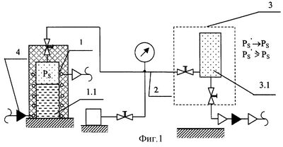 – продувают жидкостный контур 3.1 сжатым сухим газом (воздухом) 4, (закрыв и открыв соответствующие вентили);