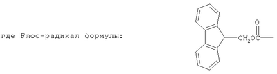 1H-ЯМР (D2O): 7,76 д, 7,60 д [4Н, Н-1, 4, 5, 8 (Fmoc)], 7,39 т, 7,31 т [4Н, J 7,5, Н-2, 3, 6, 7 (Fmoc)], 4,41 д (2Н, J 6,9, СН2 (Fmoc)), 4,21 т [1Н, J 6,9, H-9 (Fmoc)], 3,77 м (2Н, CH2N), 2,84 м (2Н, CH2O), 1,35-1,23 м (4Н, 2-СН2-).