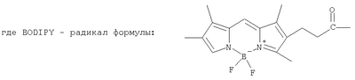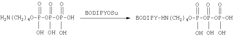 4-{3-[(1,3,5,7-Тетраметил 4,4-дифторо-3а,4а-диаза-4-бораиндацен-2-ил)пропионил]}аминобутиловый эфир трифосфорной кислоты (1к) получали из 4-аминобутилового эфира трифосфорной кислоты по методу, описанному в примере 6 для синтеза М-(родаминаминотиокарбонил)-4-аминобутилового эфира трифосфорной кислоты (1е) с использованием N-оксисукцинимидного эфира 3-(1,3,5,7- тетраметил-4,4-дифторо-3а,4а-диаза-4-бораиндацен-2-ил) пропионовой кислоты. Выход 17 мг (47%).