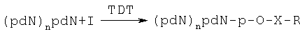 Нами обнаружено, что соединения типа I, несущие вместо нуклеозидного фрагмента линкеры с маркерньми (репортерными или лигандными) группами, являются эффективными субстратами TDT.
