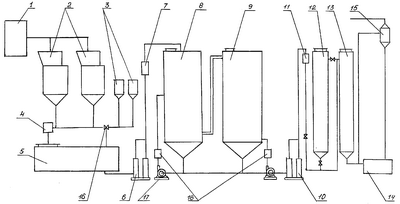 В смесителе-предразварнике 5 устанавливают температурный режим 50-52°С. Продолжительность пребывания в нем 15-20 минут.