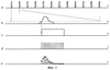 На втором выходе синхронизатора 9 формируется последовательность импульсов с периодом ТАЦП, которые поступают на тактовый вход АЦП, а также счетный вход счетчиков 5-1, 5-2 и первый вход элемента И (узел 8). В исходном состоянии, пока дисперсионный анализатор 1 не работает, на первом входе триггера 11 отсутствуют сигналы, а на его выходе устанавливается уровень логического нуля, т.к. на втором входе триггера появится импульс с выхода переноса счетчика 5-2, а сам этот счетчик ввиду появления на его режимном входе логического нуля перейдет в режим ожидания. На первом выходе блока 9 формируется последовательность импульсов, которые с периодом ТДАС запускают дисперсионный анализатор 1, с этой же периодичностью устанавливается в исходное состояние счетчик 5-1 (фиг.2а). Через некоторое время на выходе дисперсионного анализатора 1 появляется радиочастотный отклик, который в масштабе времени отображает спектр сигнала на входе устройства. На выходе детектора формируется огибающая этого отклика (фиг.2в), которая поступает на вход АЦП (узел 3). На выходе АЦП появляется последовательность параллельных цифровых кодов, значение каждого из которых пропорционально амплитуде отсчетов, полученных с периодичностью ТАЦП. Эти коды в узле 7 (представляющем собой цифровой компаратор) сравниваются с пороговым кодом, установленным с формирователя 10. Как только значение кода с выхода АЦП превысит пороговый код, изменяется выходное состояние узла сравнения 7, что приведет к перебрасыванию триггера 11 в состояние логической единицы (фиг.2с). По фронту этого сигнала, сформированного на выходе триггера, производится запись в узел 4-2 кода счетчика 5-1. Значение этого кода соответствует задержке первого обнаруженного отсчета, т.е. определяет начальную спектральную частоту. Кроме того, счетчик 5-2 по своему управляющему входу переходит в рабочее состояние (счетный режим) и находится в нем, пока на его выходе переноса не сформируется импульс, переводящий триггер 11 и сам счетчик 5-2 в исходное состояние (фиг.2с, срез сформированного импульса). Во время действия импульса (фиг.2с) на выходе элемента И формируются импульсы, следующие с периодом ТАЦП (фиг.2d). Количество этих импульсов М определяется глубиной работы счетчика 5-2, в свою очередь эта характеристика счетчика выбирается исходя из ожидаемой максимальной ширины отклика на выходе дисперсионного анализатора 1, т.е. максимальной ширины спектра сигналов на входе устройства (на фиг.2d для определенности количество импульсов принято равным шестнадцати). По этим импульсам в узел 5-1 производится последовательная запись М параллельных кодов (фиг.2е, здесь М=16 и условно каждый код представлен в виде отрезка линии, высота которого пропорциональна величине кода). При обнаружении последующих сигналов работа устройства происходит аналогичным образом. В результате этого накапливается информация о всех обнаруженных спектральных откликах в следующем формате: в узле памяти 4-2 – N цифровых кодов, соответствующих начальной спектральной частоте; в узле памяти 4-1 – N·M цифровых кодов, в которых содержится информация о форме N спектральных откликов. Накопленная в узлах оперативной памяти информация передается на регистрирующий блок 6, в качестве которого целесообразно использовать компьютер. В этом блоке производится обработка получе