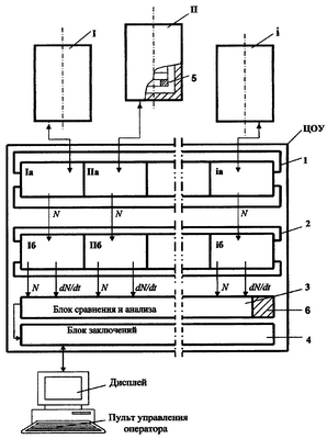 Блок 3 – это блок сравнения и анализа величин и скоростей приращения потоков излучений нейтронов как раздельно по данным каждого из измерительно-контролирующих устройств, так и по групповой или общей их совокупности.