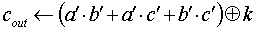Следующее вычисление вытекает из этого для операции «исключающее ИЛИ», т.е., скажем, если АЛУ должно выполнять операцию «исключающее ИЛИ»: