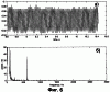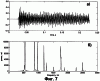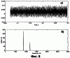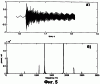 на фиг.6 – акустический сигнал (а) и спектр колебаний в установившемся режиме (б) для образца 1;