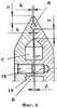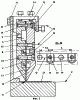 На фиг.3 показано приспособление 31. Средства выставки и юстировки 39 и 40 установлены в ряду “I”, близрасположенном к кромке распыления расходного масла “W”. Приспособление может использоваться во всех случаях выставки и юстировки размера канала “К”. Показан корпус сопла, содержащий участок “А” масляного контура подогрева расходного масла в виде трубки 22. Трубка омывается расходным маслом в распределительном канале “V” с входным отверстием для масла “Р”. Канал сообщается с распределительным каналом “С” через отверстия “J”. Трубка имеет вход и выход к контуру подогрева расходного масла (не показаны).