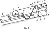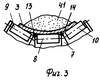 Кинематическая связь может быть выполнена (фиг.1) в виде сдвоенного гибкого элемента 29, один конец 30 которого соединен с поворотной стойкой 24, а второй конец 31 – со снабженным поперечиной 32 рычагом 33 с возможностью его взаимодействия с тележкой 11 натяжного устройства после обрыва ленты 3. Рычаг 33 посредством шарнира 34 установлен на стойке 35, закрепленной на направляющей раме 36 натяжного устройства.