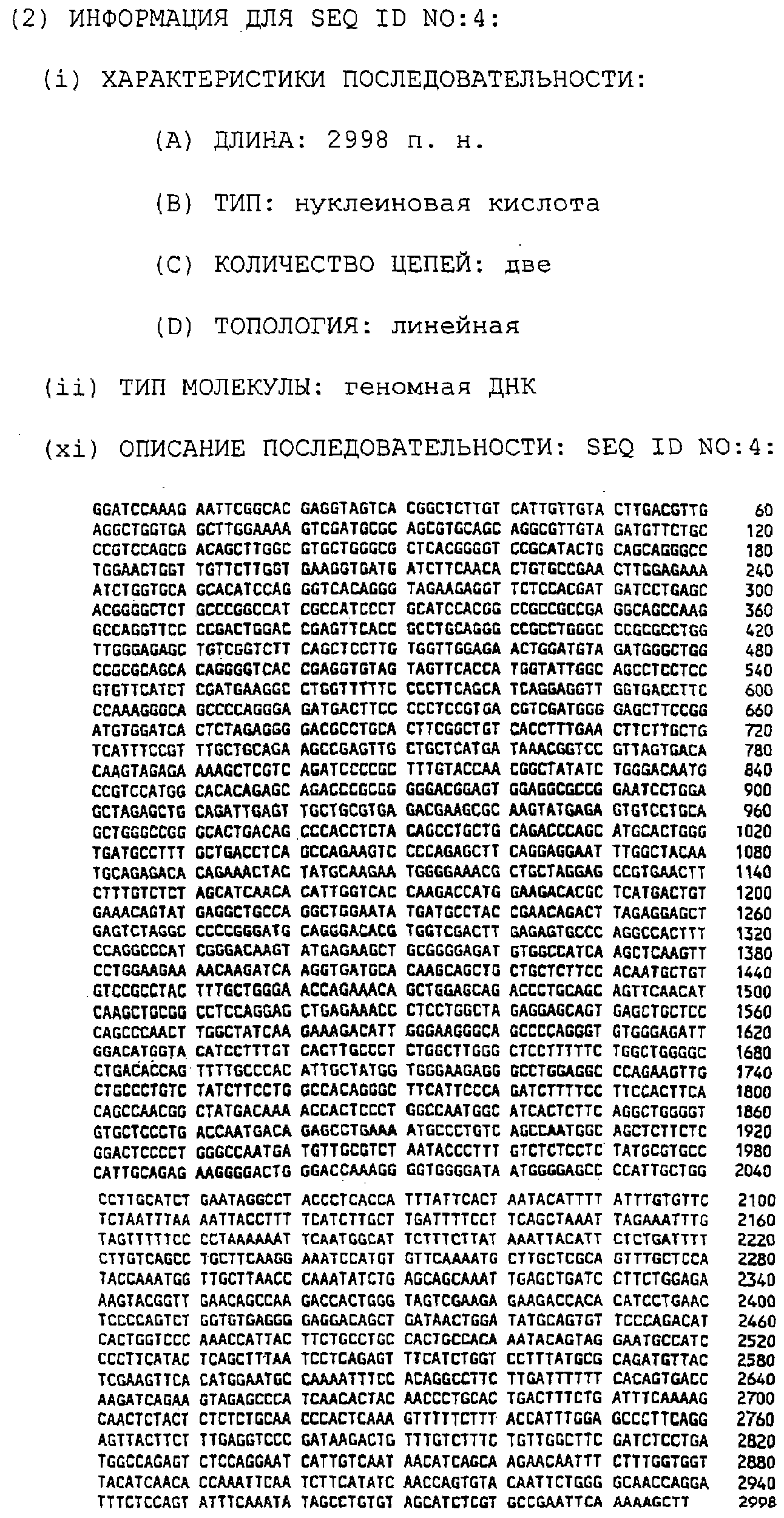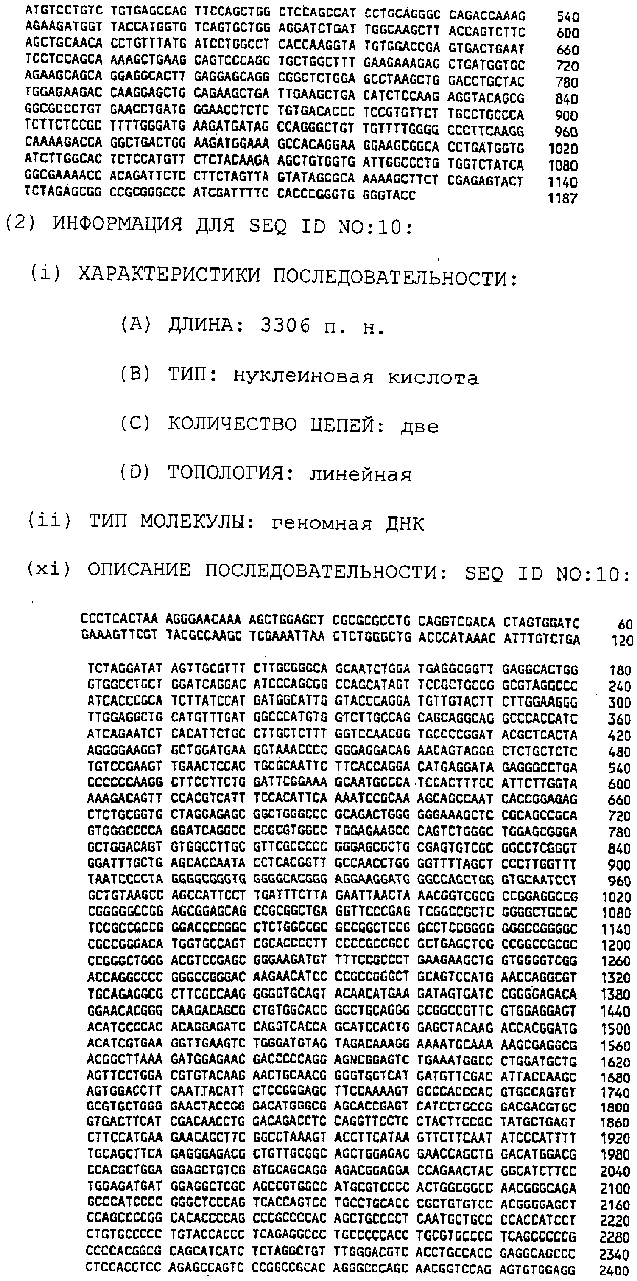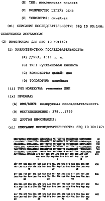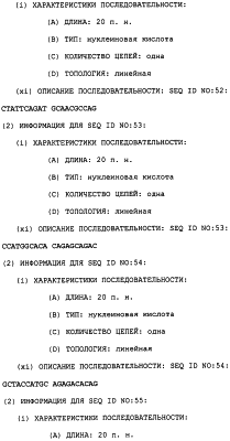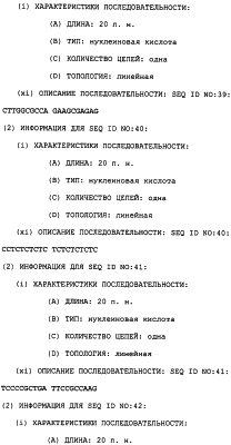 Предпочтительные полинуклеотидные последовательности являются на 50%, 70%, 80%, 90% или 100% идентичными одной из последовательностей, приведенных в качестве примеров в этом описании; в порядке увеличения предпочтительности. Длина последовательных остатков в идентичной или гомологичной последовательности, сравнимой с примерной последовательностью, может быть приблизительно 15, 30, 50, 75, 100, 200 или 500 остатков в порядке увеличения предпочтительности вплоть до длины целого клона. Нуклеотидные замены, которые обусловливают консервативную замену или сохраняют функцию кодируемого полипептида (в смысле гибридизационных свойств или кодируемого продукта) являются особенно предпочтительными заменами.