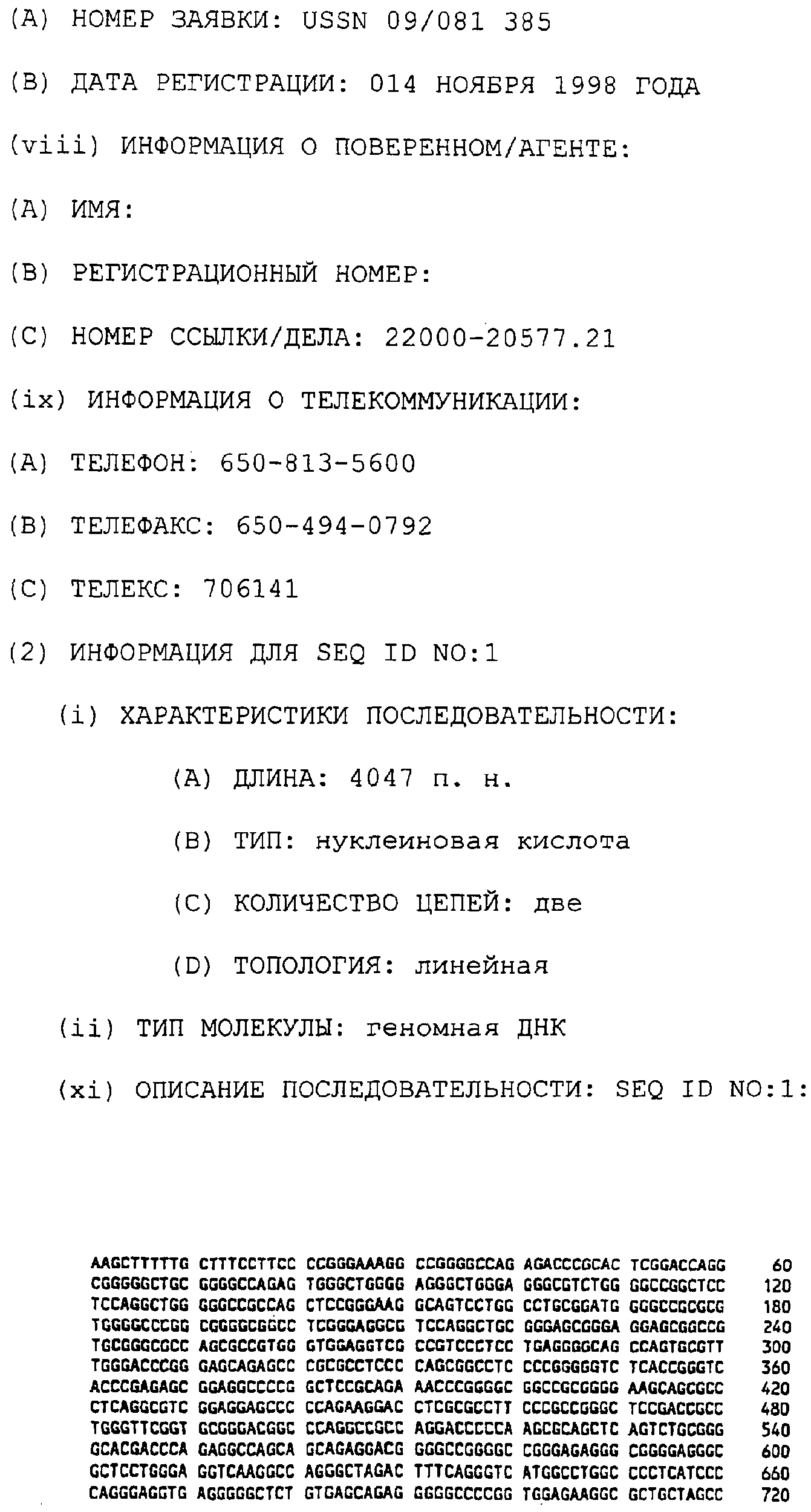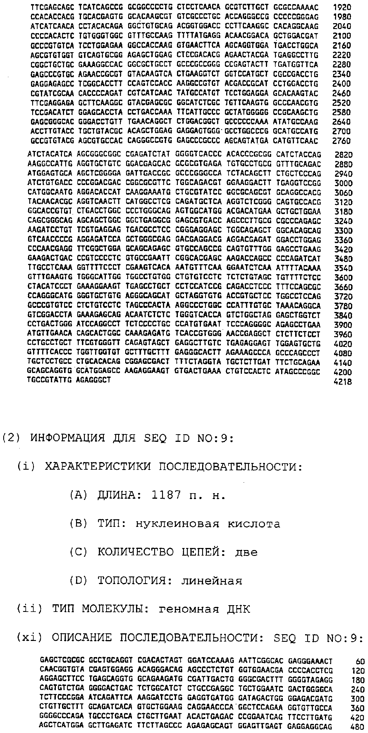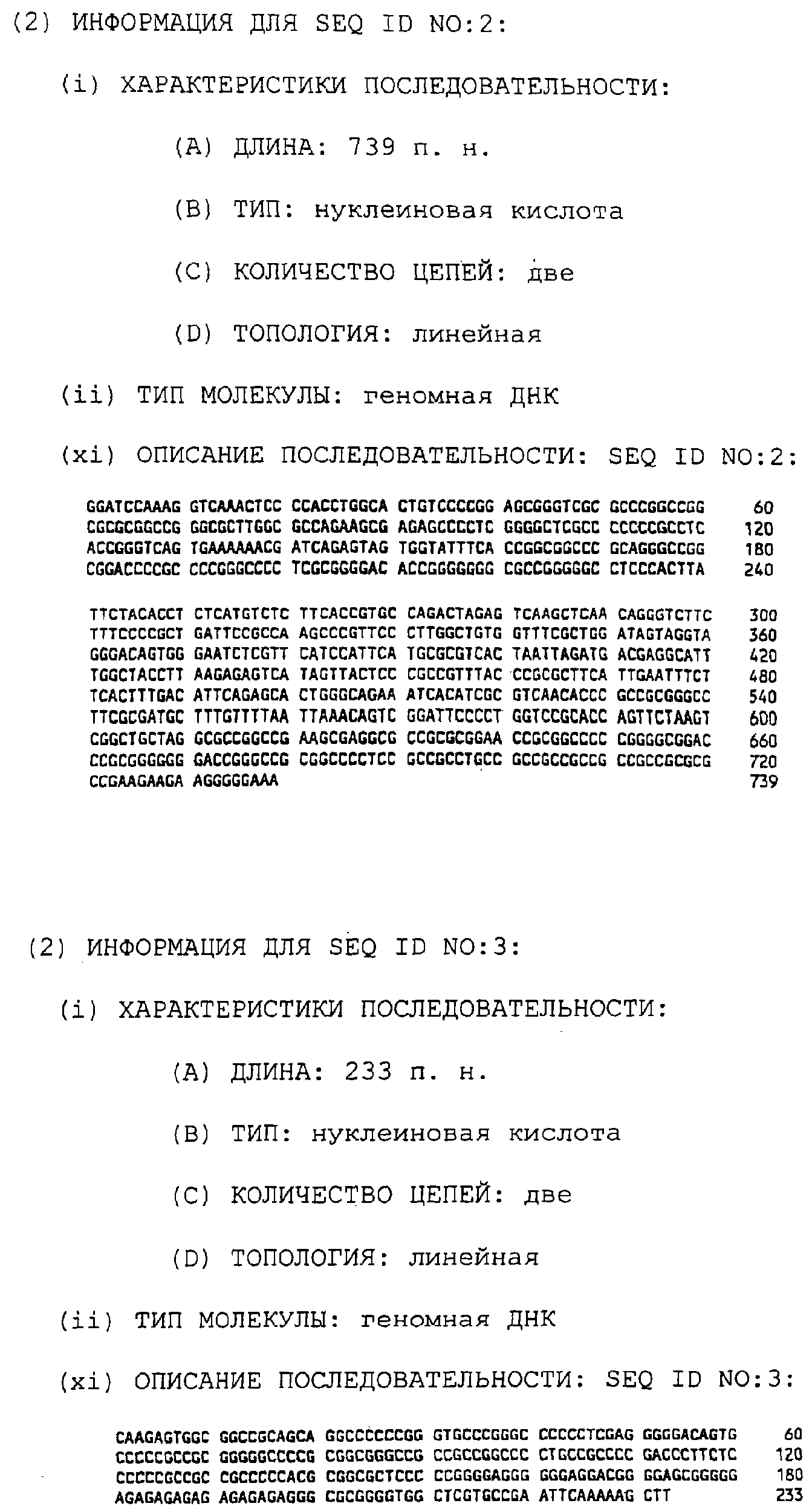 Предпочтительные полинуклеотидные последовательности являются на 50%, 70%, 80%, 90% или 100% идентичными одной из последовательностей, приведенных в качестве примеров в этом описании; в порядке увеличения предпочтительности. Длина последовательных остатков в идентичной или гомологичной последовательности, сравнимой с примерной последовательностью, может быть приблизительно 15, 30, 50, 75, 100, 200 или 500 остатков в порядке увеличения предпочтительности вплоть до длины целого клона. Нуклеотидные замены, которые обусловливают консервативную замену или сохраняют функцию кодируемого полипептида (в смысле гибридизационных свойств или кодируемого продукта) являются особенно предпочтительными заменами.