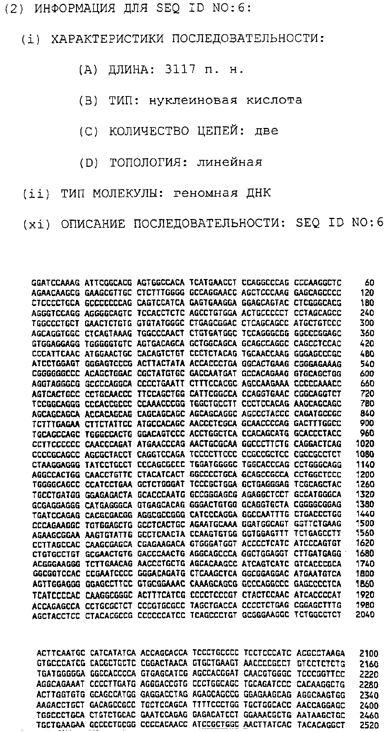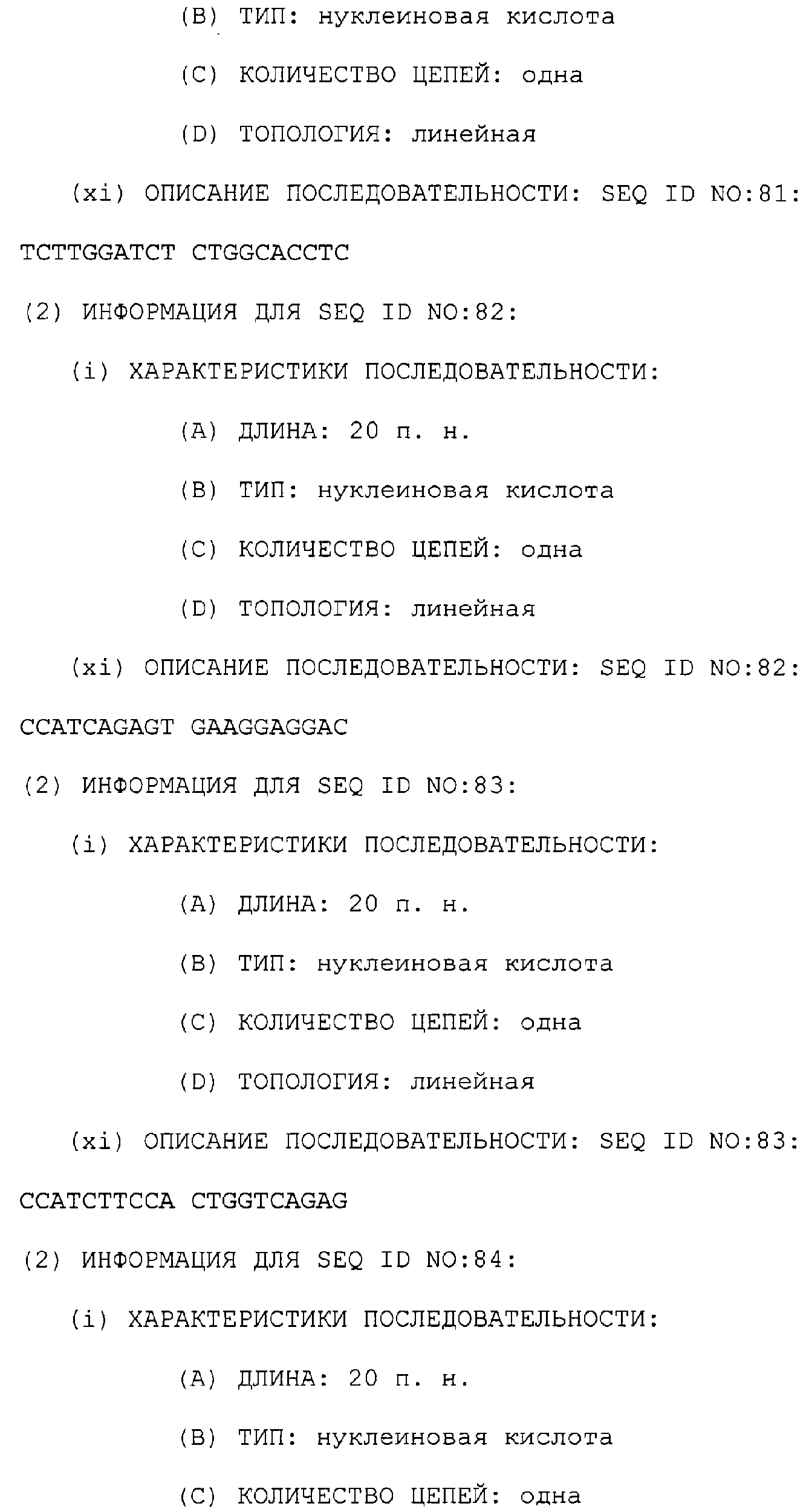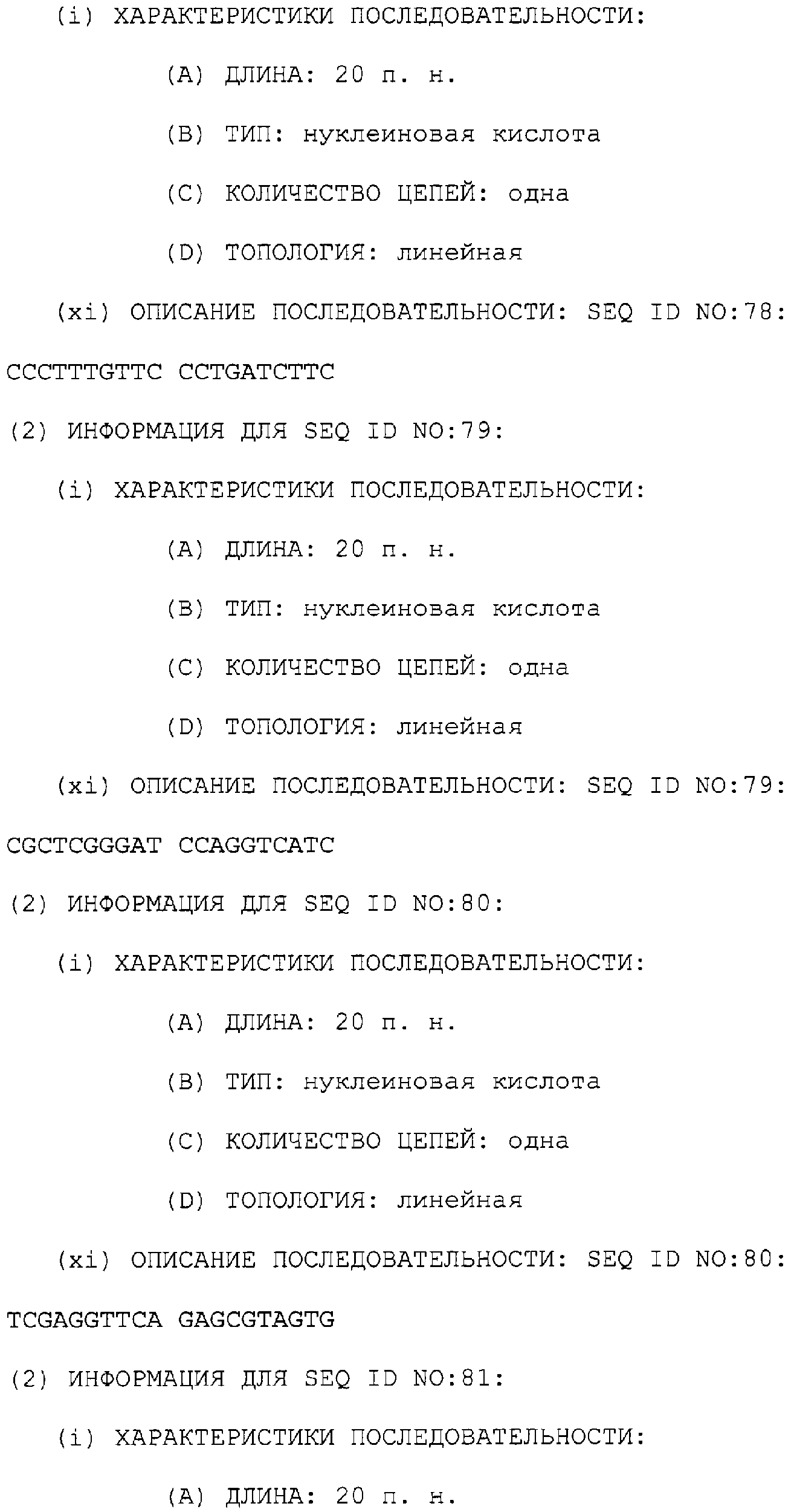 Процент идентичности последовательности для полинуклеотиов или полипептидов рассчитывают сопоставлением сравниваемых последовательностей и затем подсчетом числа общих остатков в каждом сопоставляемом положении. Никакого “пенальти” не налагается из-за присутствия вставок или делеций, но они допускаются только в том случае, когда требуется согласовать явно увеличенное число аминокислотных остатков в одной из сопоставляемых последовательностей. В том случае, когда одна из сравниваемых последовательностей указана как являющаяся “последовательной”, “гэпы” (пробелы) в этой последовательности не допускаются во время сравнения. Процентная идентичность выражается как количество (в %) остатков в тестируемой последовательности, которые являются идентичными остаткам в сравнительной или ссылочной последовательности.