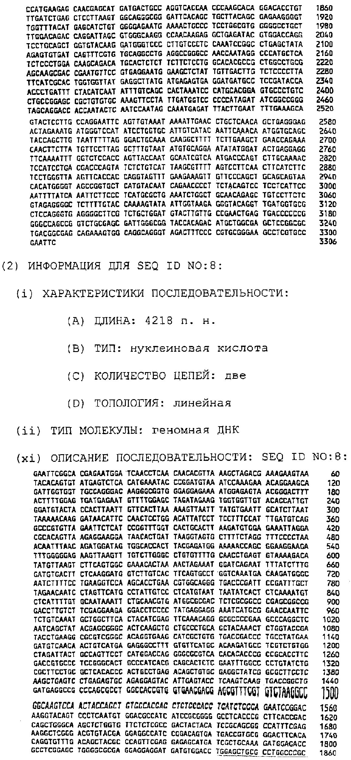 Клон Р2-13 (AIM8): Внутренние праймеры, использованные для секвенирования, показаны в SEQ ID NO:107-SEQ ID NO:118. Последовательность AIM8 представлена в SEQ ID NO:8. Самая длинная открытая рамка считывания (ORF) в последовательности AIM8 имеет длину 852 АА (аминокислоты) и представлена в SEQ ID NO:153.