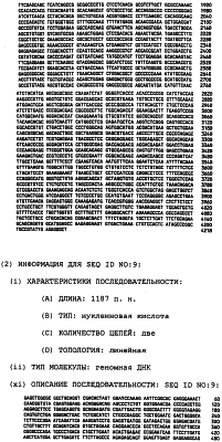 7. Выделенный полинуклеотид, который содержит нуклеотидную последовательность по меньшей мере из 20 последовательных нуклеотидов, содержащихся в любой из SEQ ID NO:1-2, 5-6 и 8-10; где полинуклеотид является реагентом детекции, таким, как меченый зонд или праймер для амплификации, который специфически идентифицирует полинуклеотид, включающий SEQ ID NO:1-2, 5-6 и 8-10.