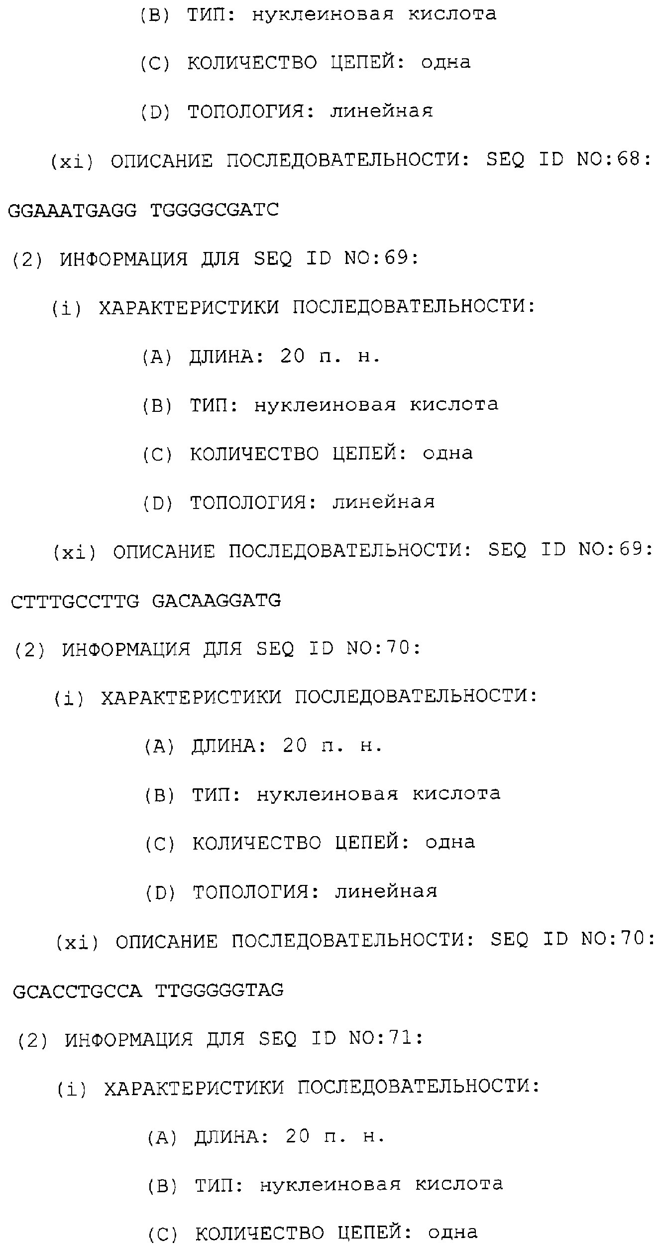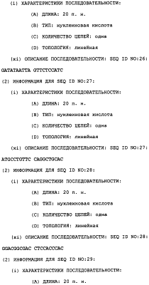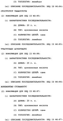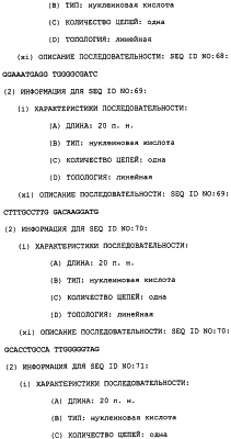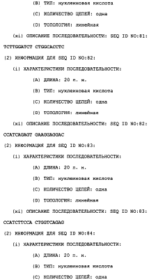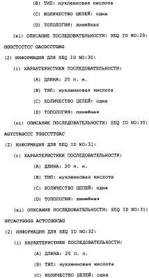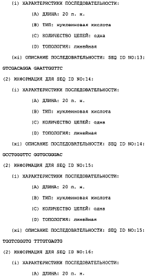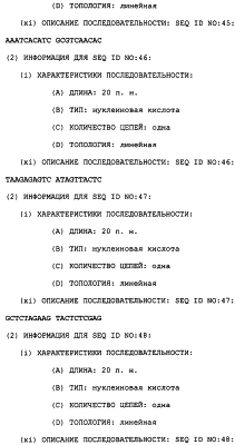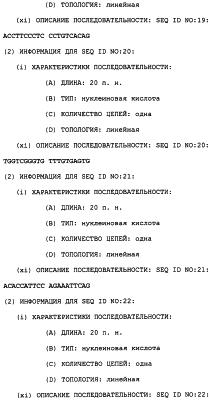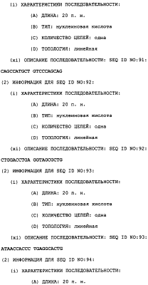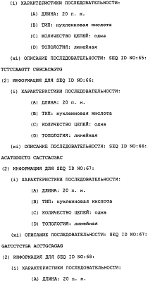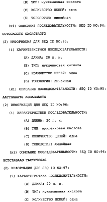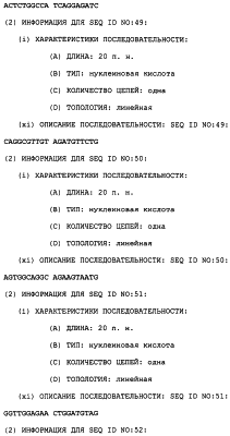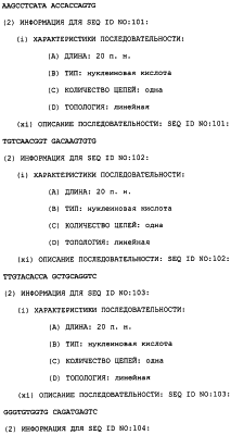 Полинуклеотиды данного изобретения могут быть получены любым подходящим способом в данной области. С использованием данных, обеспеченных в данном описании, последовательности менее 50 п.н. легко получают химическим синтезом, либо через коммерческую службу, либо при помощи известного способа синтеза, такого как триэфирный способ или фосфитный способ. Предпочтительным способом является тверодофазный синтез с использованием мононуклеозидфосфорамидитных связывающих единиц (Hirose et al., Tetra, Lett. 19:2449-2452, 1978; US Patent No. 4415732).