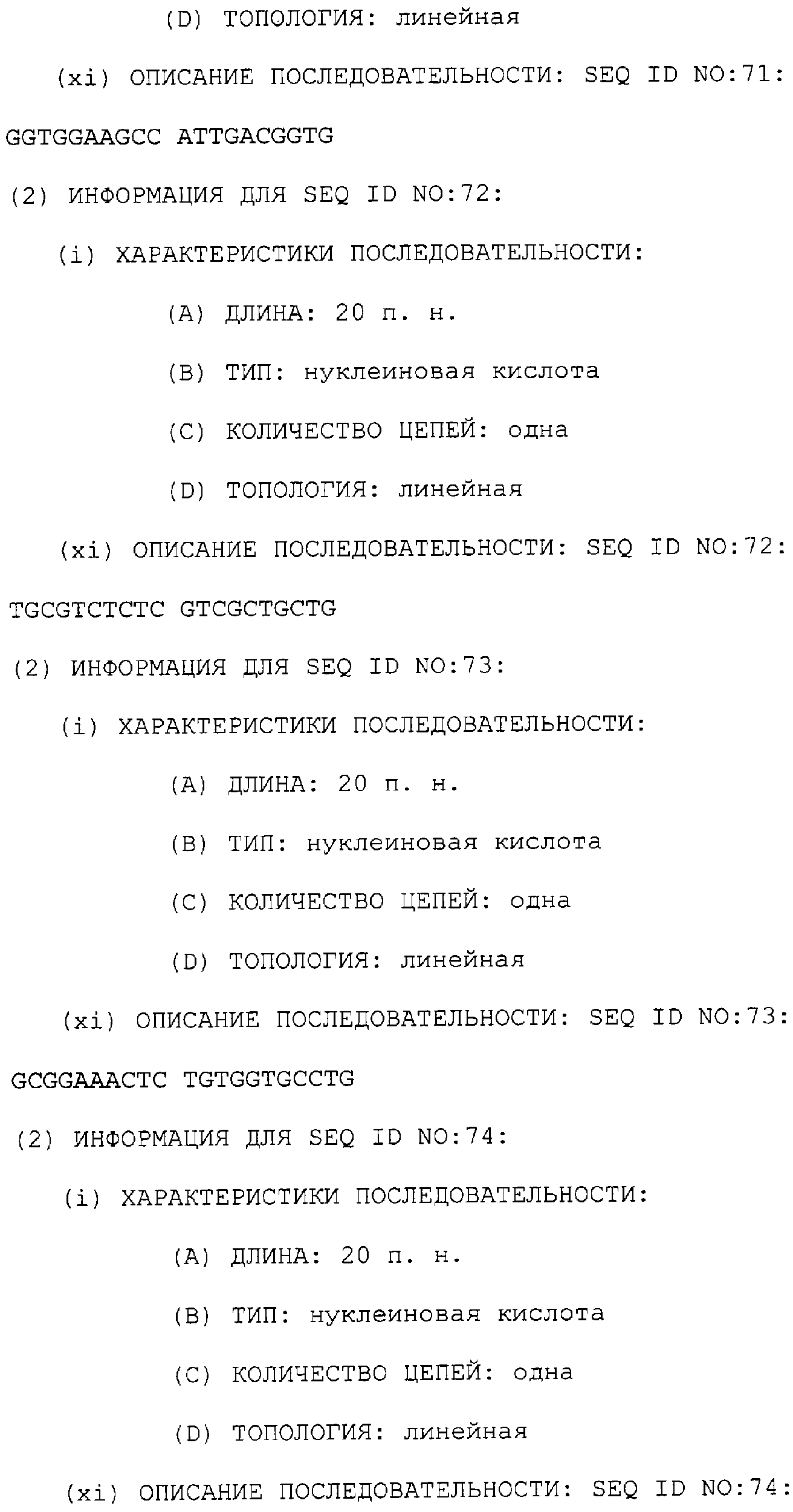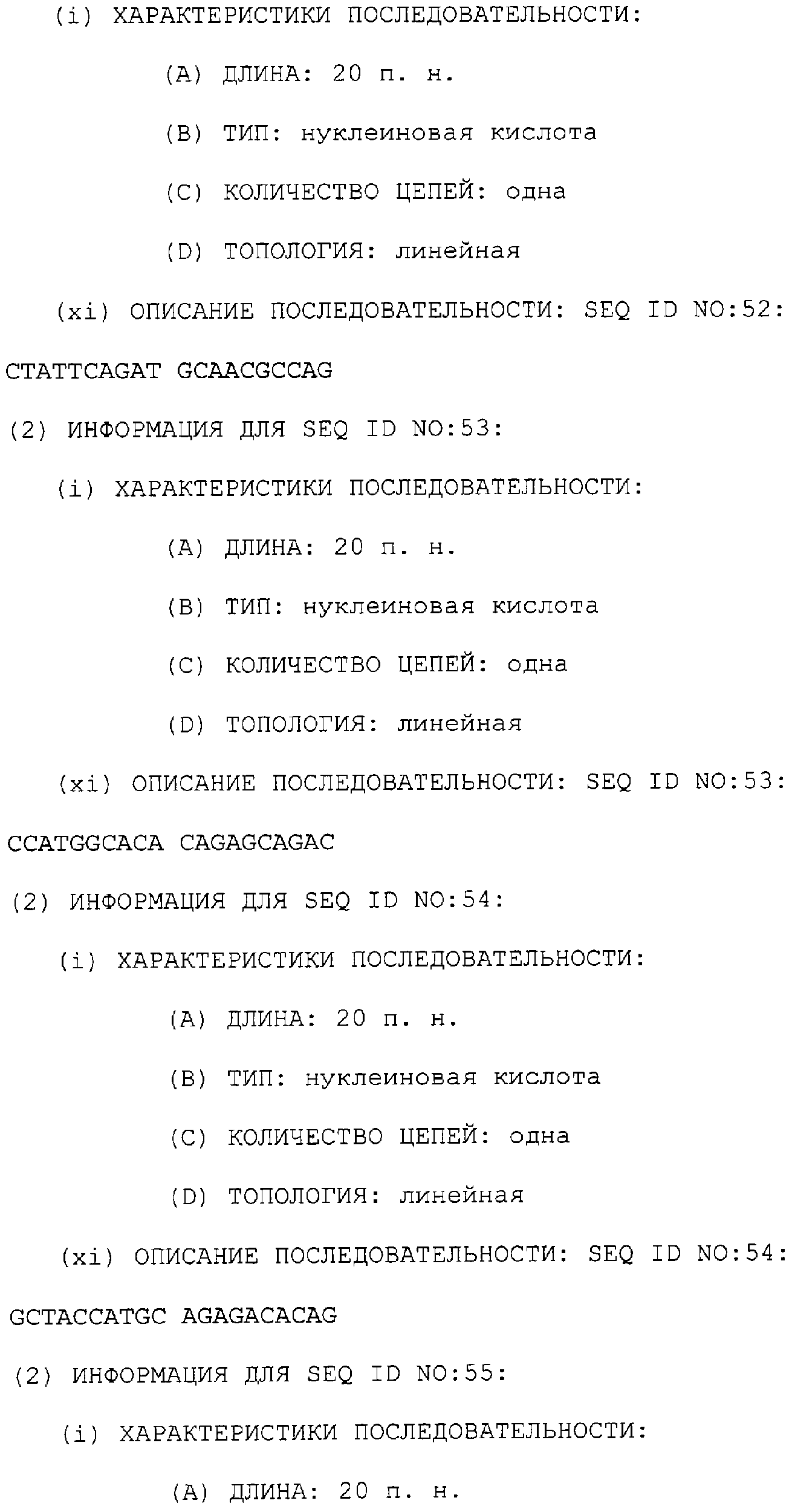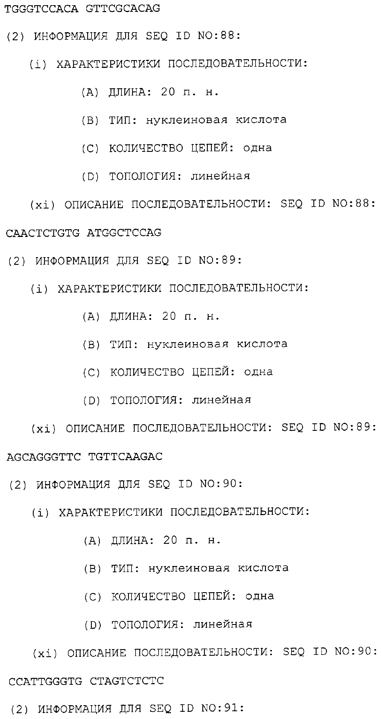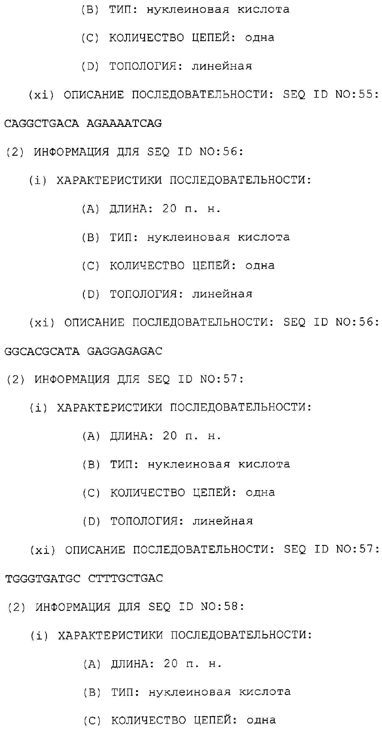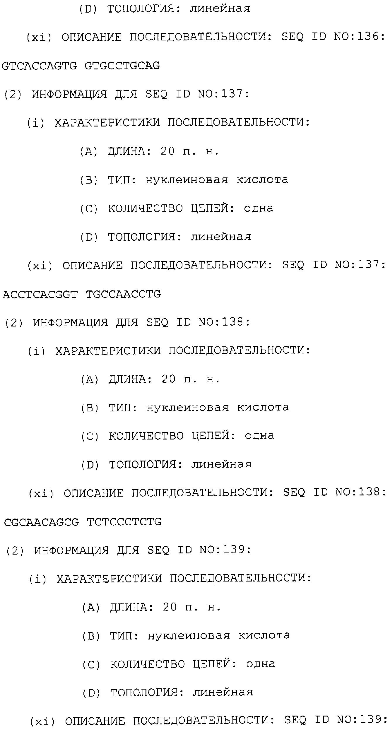 Предпочтительные последовательности являются на 40%, 60%, 80%, 90% или 100% идентичными одной из последовательностей, приведенных в качестве примеров в этом описании; в порядке увеличения предпочтительности. Длина этой идентичной или гомологичной последовательности, сравниваемой с нативным полинуклеотидом человека, может быть приблизительно 7, 10, 15, 20, 30, 50 или 100 остатков в порядке увеличения предпочтительности, вплоть до длины всего кодирующего района.