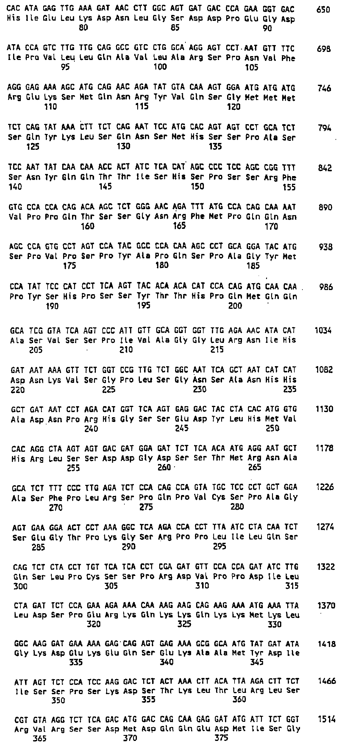 Клон 2-15 (AIM5): Внутренние праймеры, использованные для секвенирования, показаны в SEQ ID NO:66-SEQ ID NO:80. Последовательность AIM5 представлена в SEQ ID NO:5. BLAST-поиск выявил, что последовательность AIM5 проявляет некоторое сходство с фактором инициации 5А (elF-5A) человека Koettnitz et al. (1995) Gene 159:283-284, 1995 и фактором инициации 4D человека (elF 4D) Smith-McBride et al. (1989) J. Biol. Chem. 264:1578-1583, 1989.