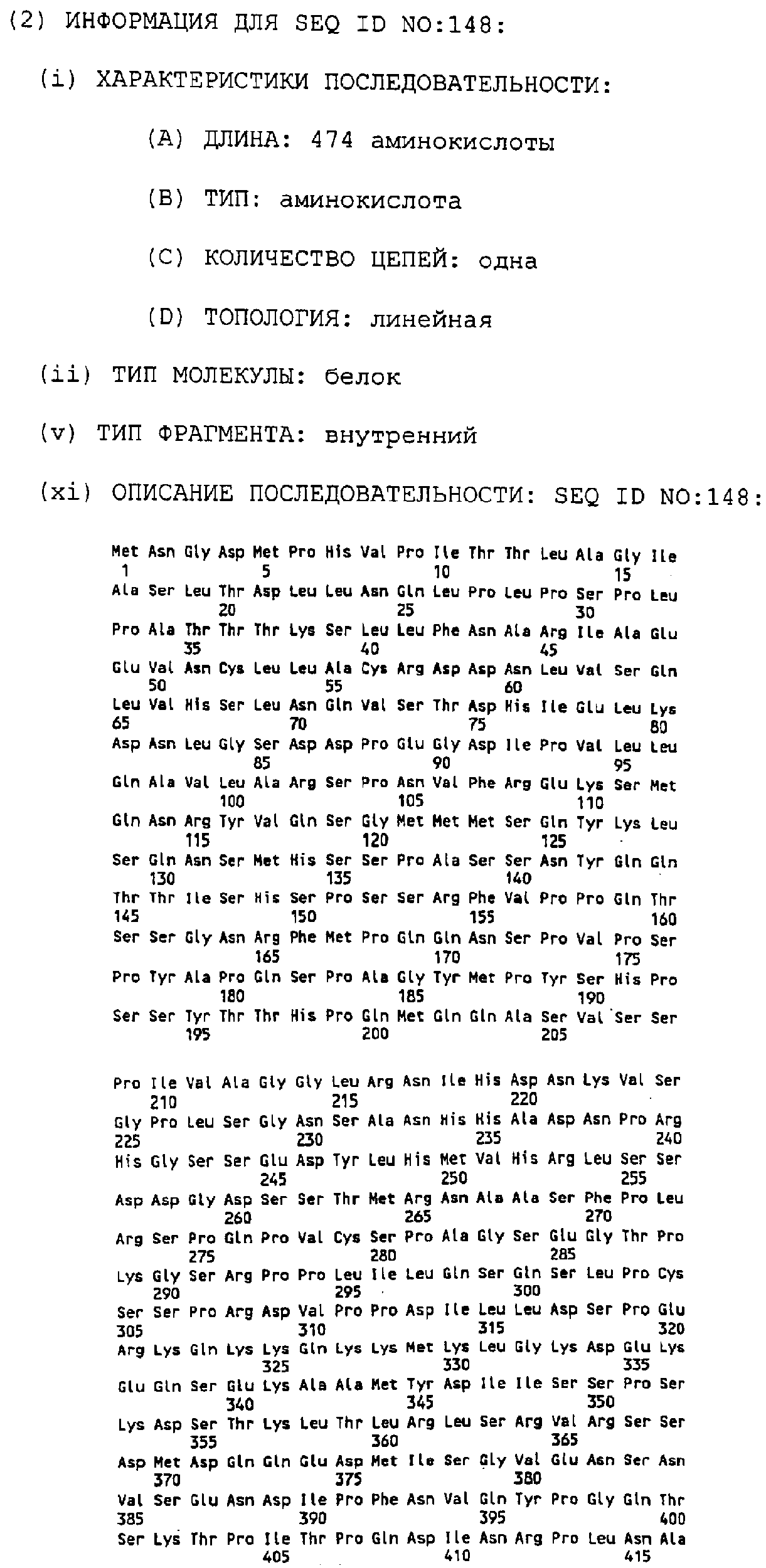 Клон 2-14 (AIM4): Внутренние праймеры, использованные для секвенирования, показаны в SEQ ID NO:14-SEQ ID NO:65. Последовательность AIM4 представлена в SEQ ID NO:4. Комплементарная цепь последовательности AIM4 представляет собой SEQ ID NO:149. Самая длинная открытая рамка считывания (ORF) в последовательности AIM4 имеет длину 236 АА (аминокислот) и представлена в SEQ ID NO:150. AIM4 имеет значимые совпадения при сопоставлении с последовательностями арфаптина 2 человека, мРНК ADE2H1, обнаруживая гомологии с SAICAR-синтазой, мРНК полипиримидиновый тракт-связывающего белка (гетерогенного ядерного рибонуклеопротеина I), несколькими генами РТВ для полимиридиновых тракт-связывающих белков, мРНК для белка porl. Арфаптин 2 человека является предполагаемым белком-мишенью фактора АДФ-рибозилирования, который взаимодействует с RAC1 посредством прямого связывания с ним. RAC1 участвует в активных перемещениях (волнах возбуждения) в мембране клетки. Арфаптин 2 имеет возможные трансмембранные сегменты, потенциальные сайты фосфорилирования СК2, сайт фосфорилирования РКС и последовательность присоединения к клетке RGD.