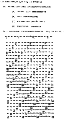 Клон Р2-2 (AIM6): Внутренние праймеры, использованные для секвенирования, показаны в SEQ ID NO:81-SEQ ID NO:93. Последовательность AIM6 представлена в SEQ ID NO:6. Самая длинная открытая рамка считывания (ORF) в последовательности AIM6 имеет длину 1038 АА (аминокислот) и представлена в SEQ ID NO:151.
