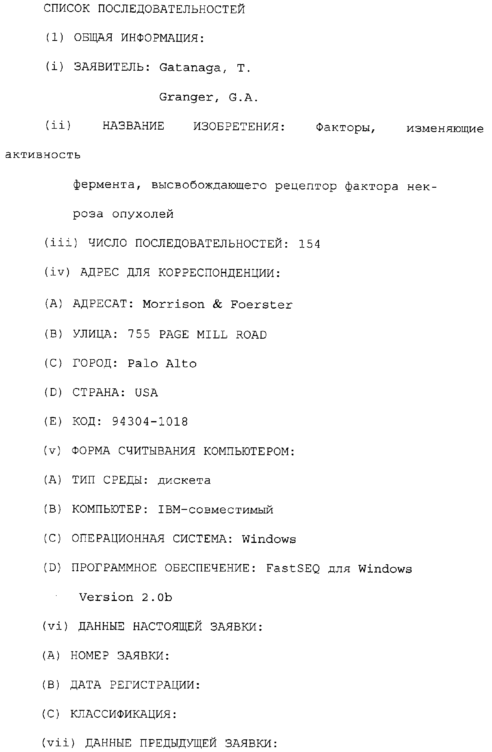 (54) ФАКТОРЫ, ДЕЙСТВУЮЩИЕ НА АКТИВНОСТЬ ФЕРМЕНТА, ВЫСВОБОЖДАЮЩЕГО РЕЦЕПТОР ФАКТОРА НЕКРОЗА ОПУХОЛЕЙ