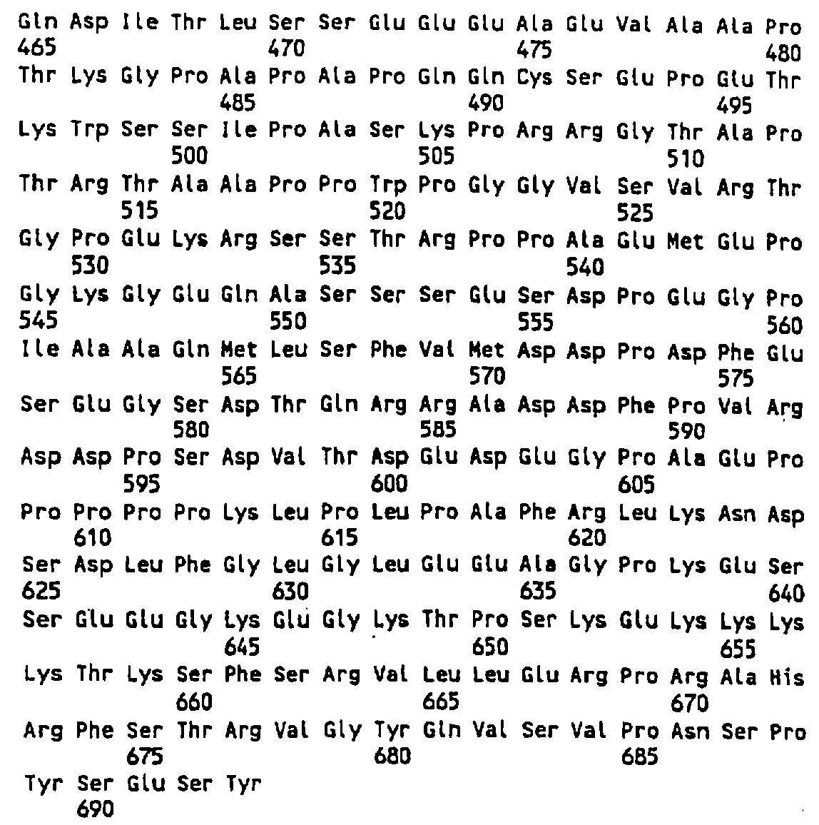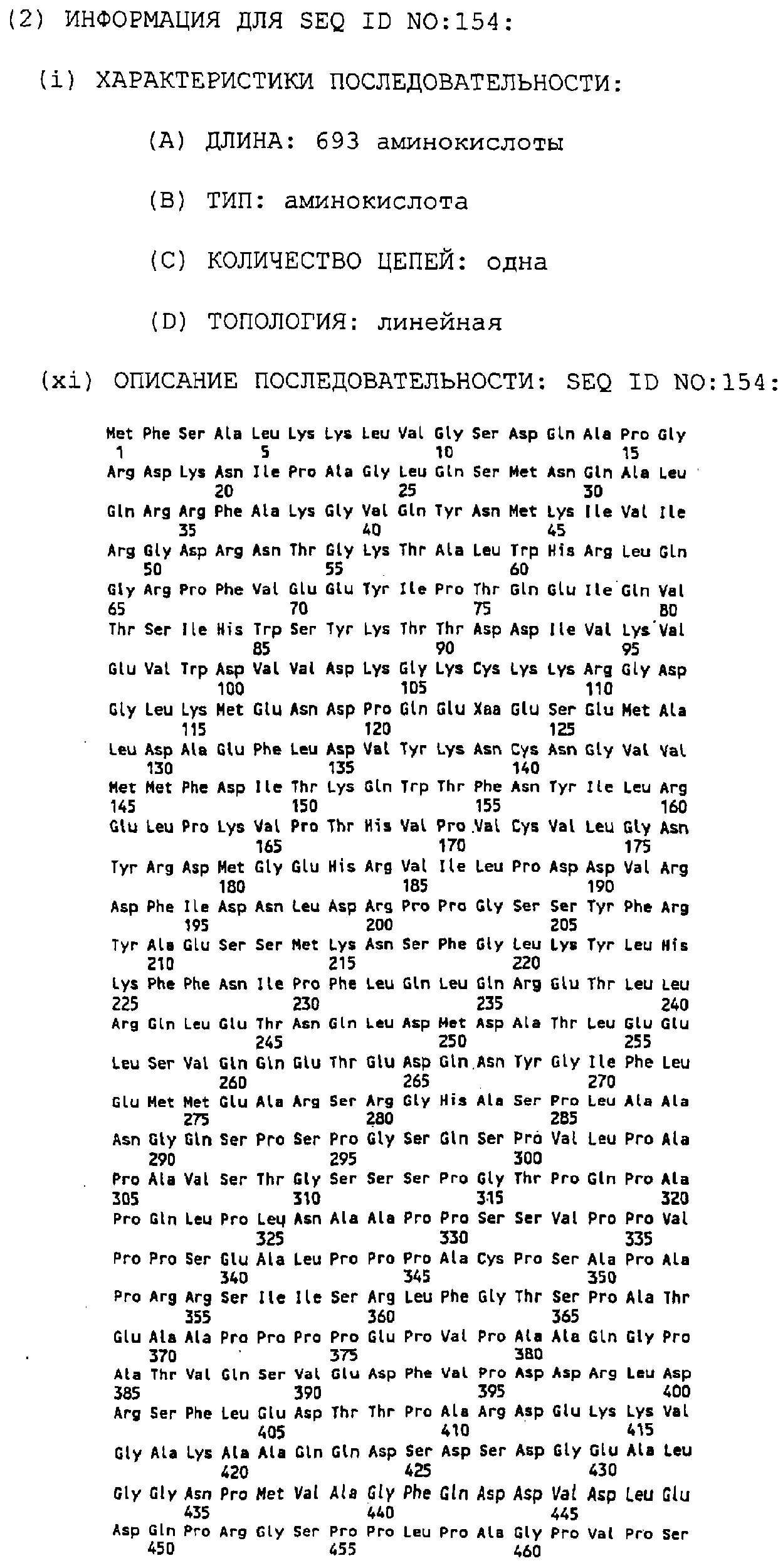 Более длинные полипептиды удобно получать экспрессионным клонированием. Полинуклеотид, кодирующий желаемый полипептид, оперативно (функционально) связывают с регуляторными элементами для транскрипции и трансляции и затем трансфицируют в подходящую клетку-хозяин. Экспрессия может выполняться в прокариотах, таких как Е. coli (ATCC Accession (Номер доступа АТСС) No 31446 или 27325), эукариотных микроорганизмах, таких как дрожжи Saccharomyces cerevisiae, или высших эукариотах, таких как клетки насекомых или млекопитающих. Ряд экспрессионных систем описан в патенте США №5552524. Экспрессионное клонирование доступно в таких коммерческих службах, как Lark Technologies, Houston TX. Получение белка из 4 примеров клонов данного изобретения в клетках насекомых иллюстрируется в примере 6. Белок очищают из продуцирующей клетки-хозяина стандартными способами химии белков, такими как аффинная хроматография и ВЖХ. Продукты экспрессии в случае необходимости для облегчения аффинной очистки получают с последовательностью-меткой (тэгом), которая может быть затем удалена.
