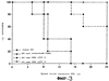 Фигура 3 является графиком выживания, показывающим, что TRRE снижает смертность в мышах, которым вводили липополисахарид (ЛПС) для индукции септического перитонита. ( ) только ЛПС; ( ) ЛПС плюс контрольный буфер; ( ) ЛПС плюс TRRE (2000 Е); ( ) ЛПС плюс TRRE (4000 Е).